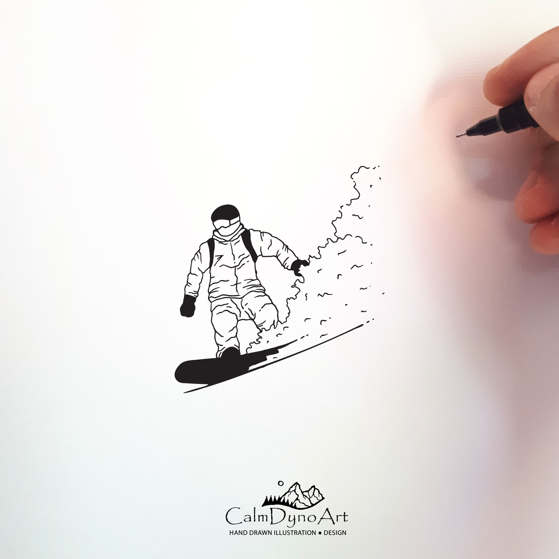 The illustration depicts a snowboarder carving down a snowy slope, a moment of motion, freedom, and connection with the mountain.