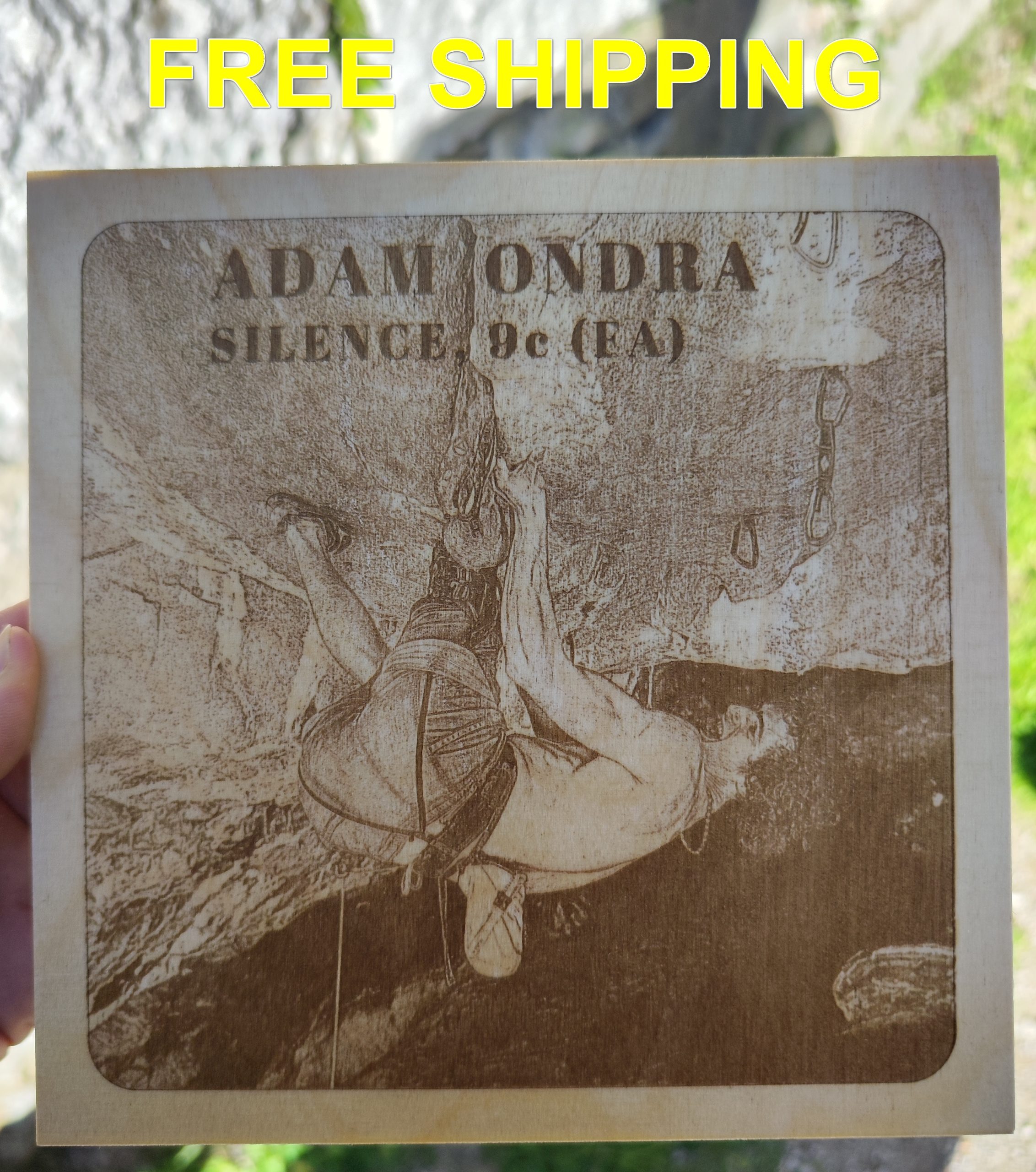 Turn your favorite climbing moment into a timeless piece of art with this custom laser engraving on birch plywood.